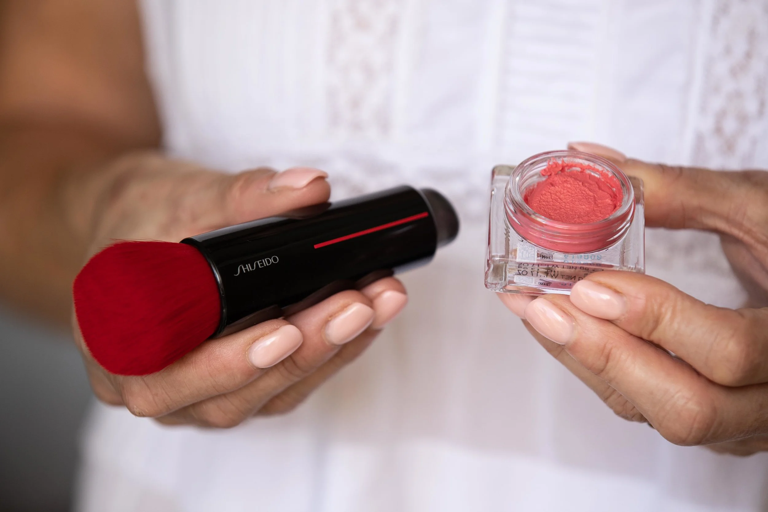 Shiseido Minimalist WhippedPowder Blush, $50 and Daiya Fude Face Duo Brush, $90.