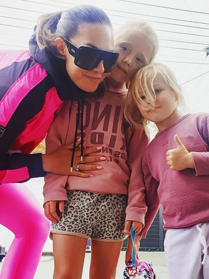 Renee with two of her three children, son Leo and daughter Gigi out on a bubble walk.