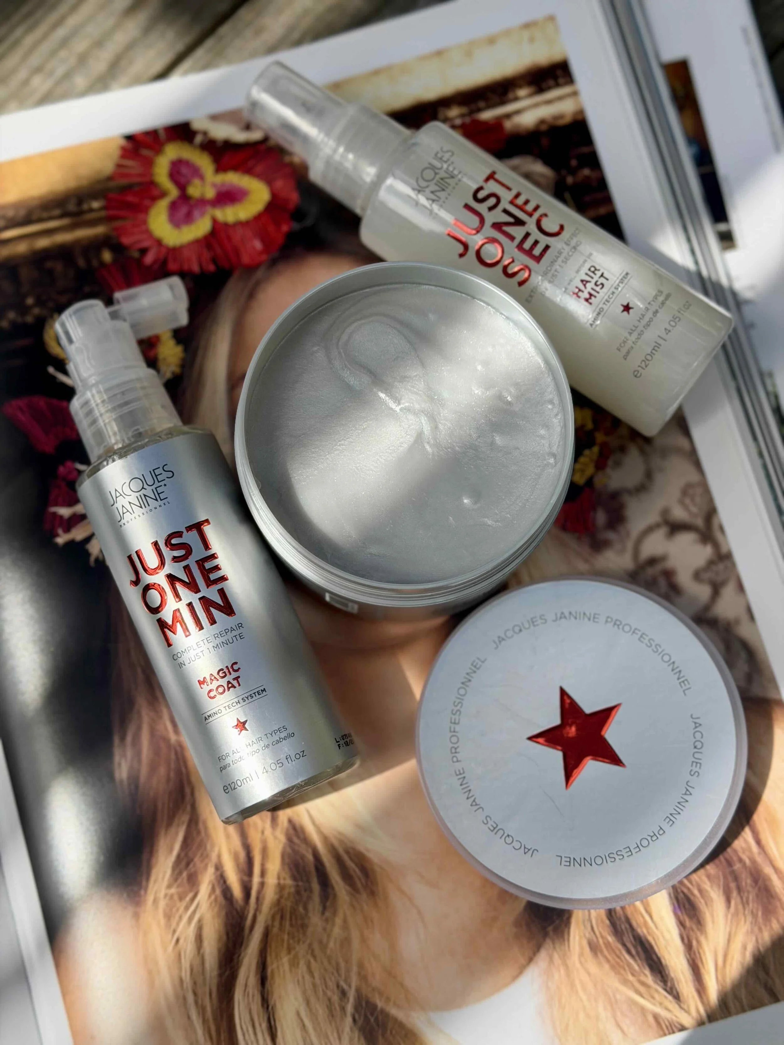 The full collection of Jacques Janine available is the hero products in the range, from Just On Min, Just One Sec, Hair Sun Protect, J18, and Damage Repair, available exclusively at Farmers.