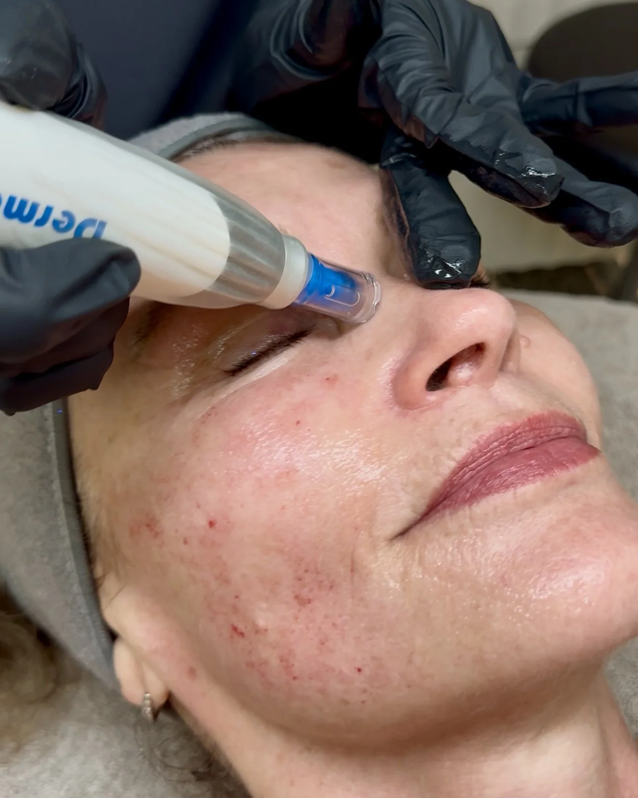 Microneedling (also known as collagen induction therapy) has been around for over a century. However, Dermapen 4 Gold is best in class when it comes to treating skin concerns. Performed by expertly trained estheticians, it addresses the appearance of wrinkles, skin texture and laxity, acne scarring, and pigmentation. The pen-like device, resembling a digital thermometer, features a 16-needle cartridge that creates vertical micro-channels in an up-and-down motion, to a depth of approximately 1.5 mm. This creates a wound-healing response deep in the skin, stimulating the production of new collagen and elastin, which results in skin correction that improves with each subsequent treatment.
