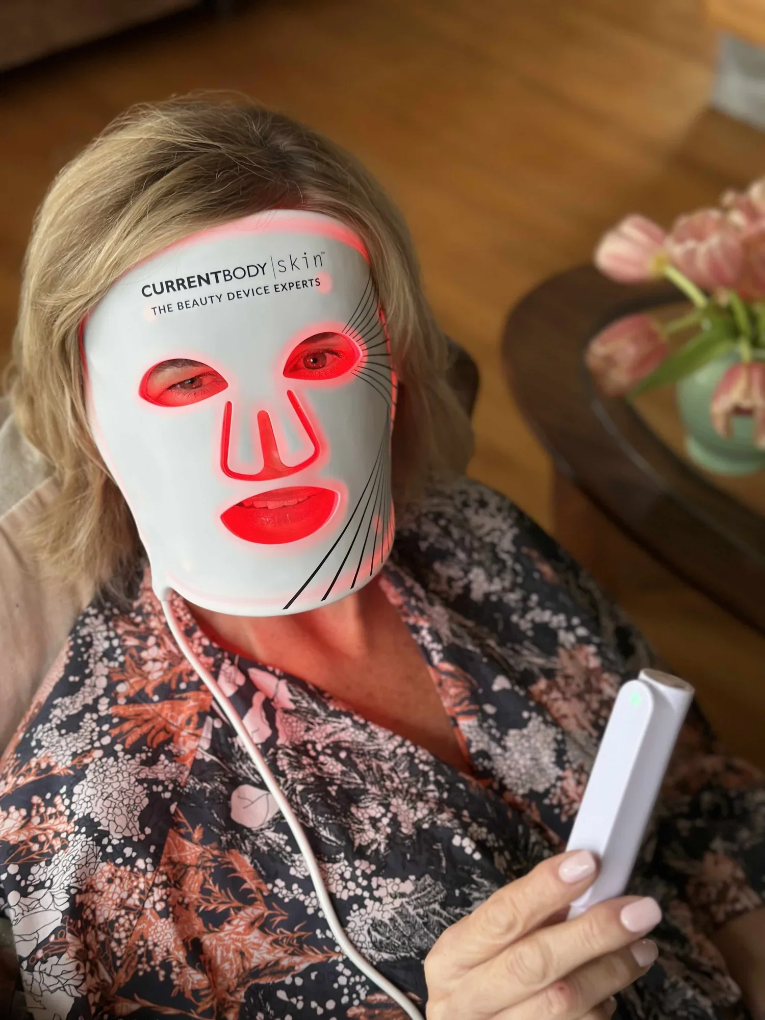 Editor Trudi Brewer with her CurrentBody LED Light Therapy Face Mask