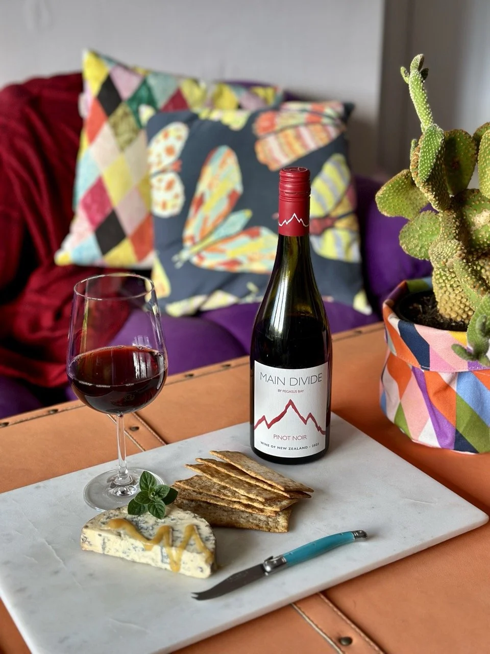 Main Divide Pinot Noir punches above its price with its silky mouthfeel, smooth dark plum and cherry aromas, and a pinch of spice. This bright 2023 ruby colour is brimming with vitality and evokes the impressive Southern Alps, the backbone of the South Island, North Canterbury, where these grapes are exclusively grown.