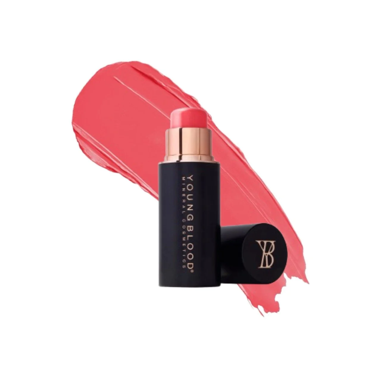 My favourite way to use the Vividluxe Crème Blush Sticks is to apply the product directly to the cheeks, and then blend out with the YB6 Powder Buffing Brush - it is a foolproof way to add colour to the face seamlessly. The blush sticks really do blend in so easily that you can't make a mistake. After applying, continue blending until you achieve your desired finished look. All Youngblood products are designed to work together, ensuring a seamless blend, regardless of whether they are a cream or powder formula. For example, you can use the blush over the powder foundation with no issues.